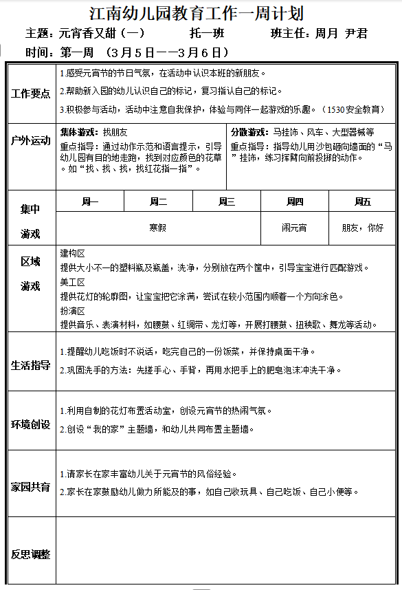 K托1班第一周周计划