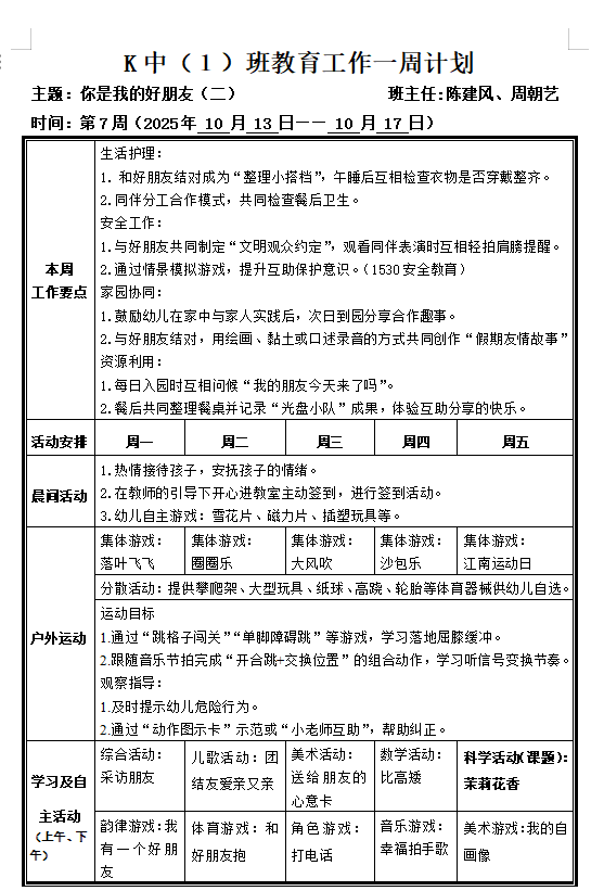 K中1班第7周周计划