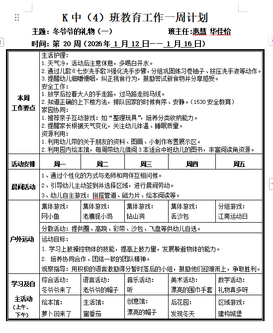 K中4班第20周周计划