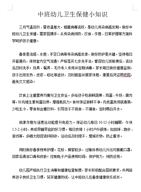 K中4班第3周保健知识